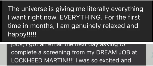 Doing everything your fave manifestation guru said on tiktok, repeating your affirmations in the mirror, and bingeing every mindset podcast you can find.